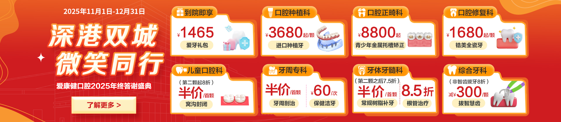 深圳种植牙的医院哪家好?爱康健齿科是华南地区建立且规模较大的感心齿科连锁机构,旗下拥有深圳家口腔医院——深圳爱康健口腔医院,拥有技术力量雄厚的医师团队和护理团队和牙科技术水平的诊疗设备,的港式服务,给你温馨舒适的看牙体验。